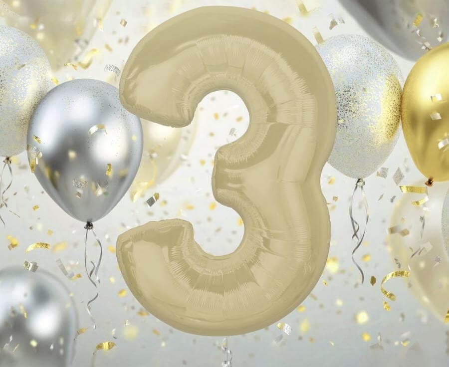 Balon foliowy, cyfra 3, matowa Latte, 92 cm