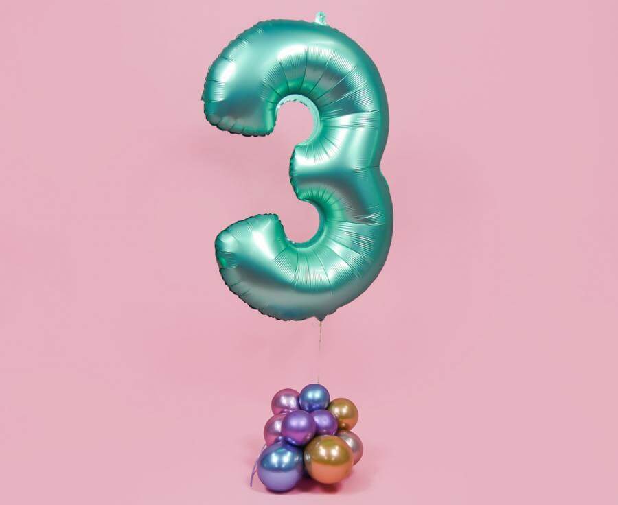 Balon foliowy, cyfra 3, miętowa matowa, 76 cm
