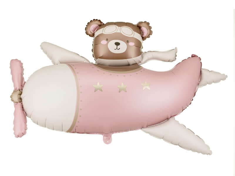 Balon foliowy Miś w Samolocie, 94×61 cm, jasny różowy
