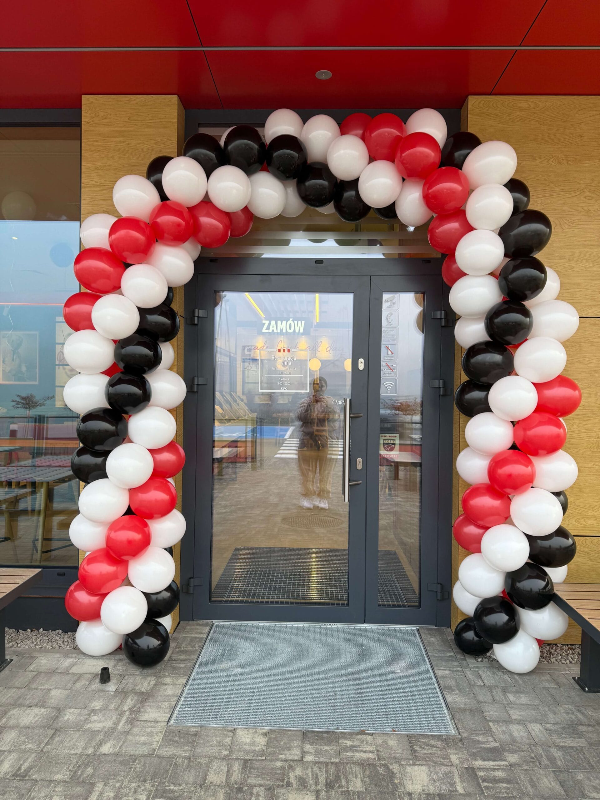 Efektowna girlanda balonowa, idealna na otwarcia lokali, eventy, urodziny i inne okazje. Tworzy eleganckie wejście i przyciąga wzrok od pierwszego spojrzenia.