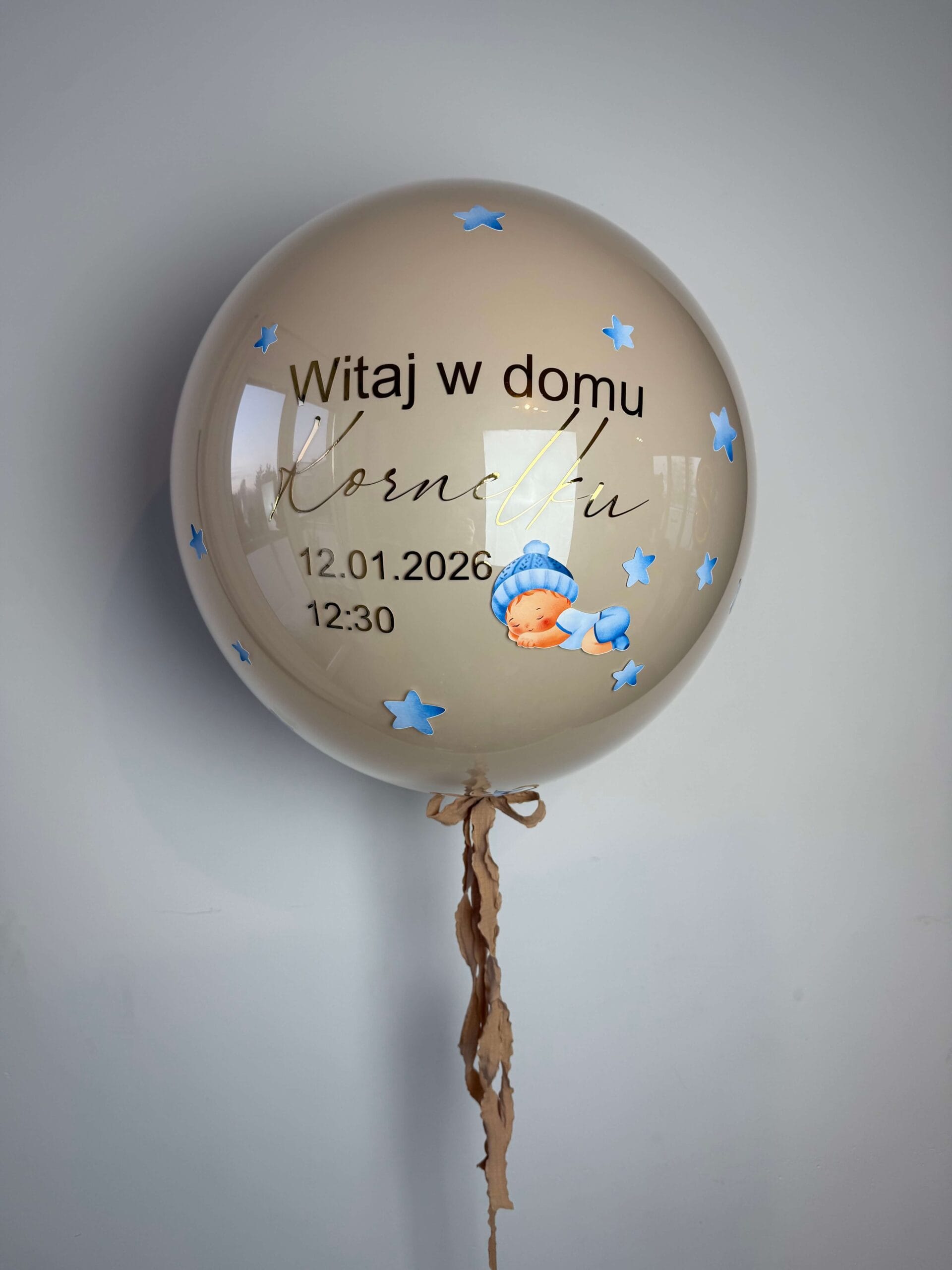 Duży szklany balon powitalny z personalizowanym napisem